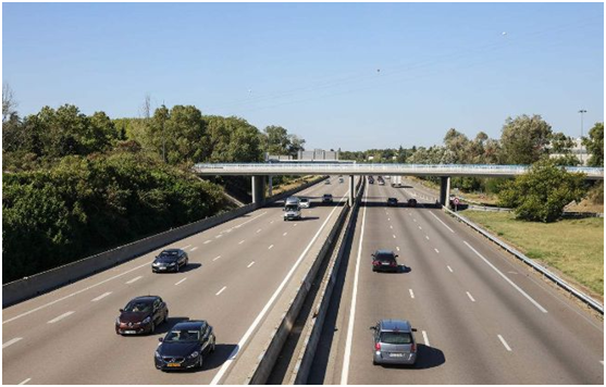 法國(guó)高速公路大多數(shù)為瀝青路面、瀝青采用改性瀝青(塑料或橡膠),典型的路面結(jié)構(gòu)類型有:柔性結(jié)構(gòu)、半剛性結(jié)構(gòu)、混合型結(jié)構(gòu)和剛性結(jié)構(gòu)。面層一般采用5厘米至6厘米的瀝青混凝土,骨料采用連續(xù)級(jí)配,有些路段使用排水瀝青面層,以減少雨水對(duì)路面摩擦系數(shù)的影響,排水瀝青面層骨料采用間斷級(jí)配,面層與基層加一層封水連接層,防止雨水滲入基層。