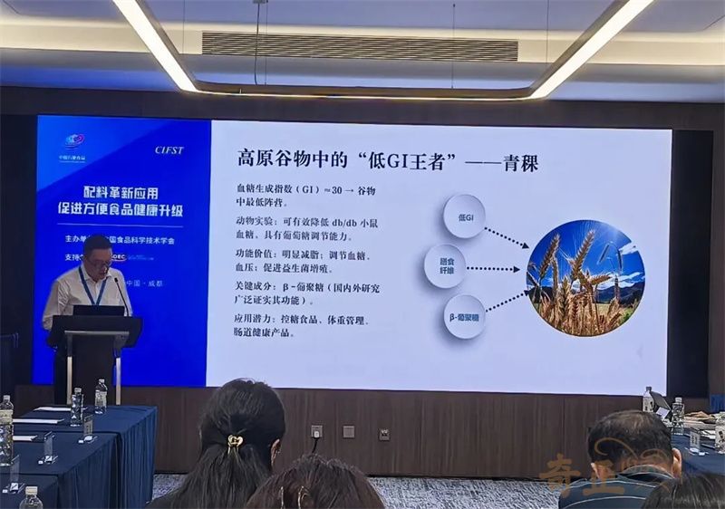 近日,由中國食品科學(xué)技術(shù)學(xué)會(huì)(CIFST)主辦的第二十五屆中國方便食品大會(huì)在四川成都召開。本屆大會(huì)以“韌性成長 向新而行”為主題,通過權(quán)威報(bào)告、行業(yè)對(duì)話、創(chuàng)新展示等不同維度,全面解碼方便食品產(chǎn)業(yè)高質(zhì)量發(fā)展的新趨勢(shì)、新動(dòng)能與新路徑。奇正青稞作為青稞產(chǎn)業(yè)龍頭企業(yè),攜旗下產(chǎn)品參會(huì),奇正集團(tuán)總經(jīng)理、奇正青稞董事長程若瓊做了題為《 守正出奇--以新質(zhì)生產(chǎn)力開拓高原的藥食寶藏 》為主題的專題報(bào)告。